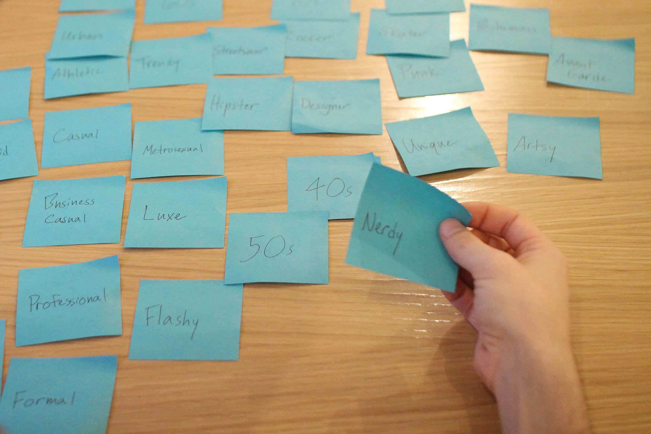 We knew it was important to cater personalized outfit recommendations to each user, so we planned to ask him to define his style during on-boarding. However, while talking to our users, we noticed that they each used different terms to define their styles. We conducted an open card sorting of over 100 terms to clarify how our users typically might associate them into more general categories.