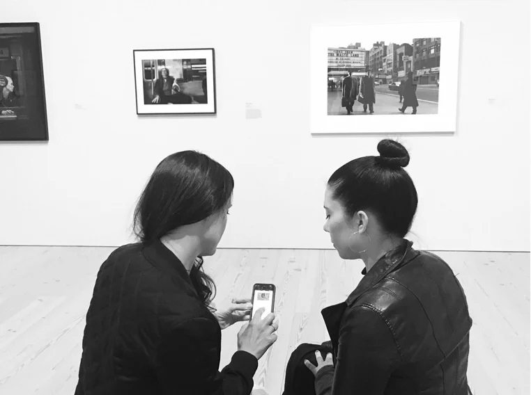 Museum visitors use their smartphones to look up supplemental information on artists or works they want to know more about