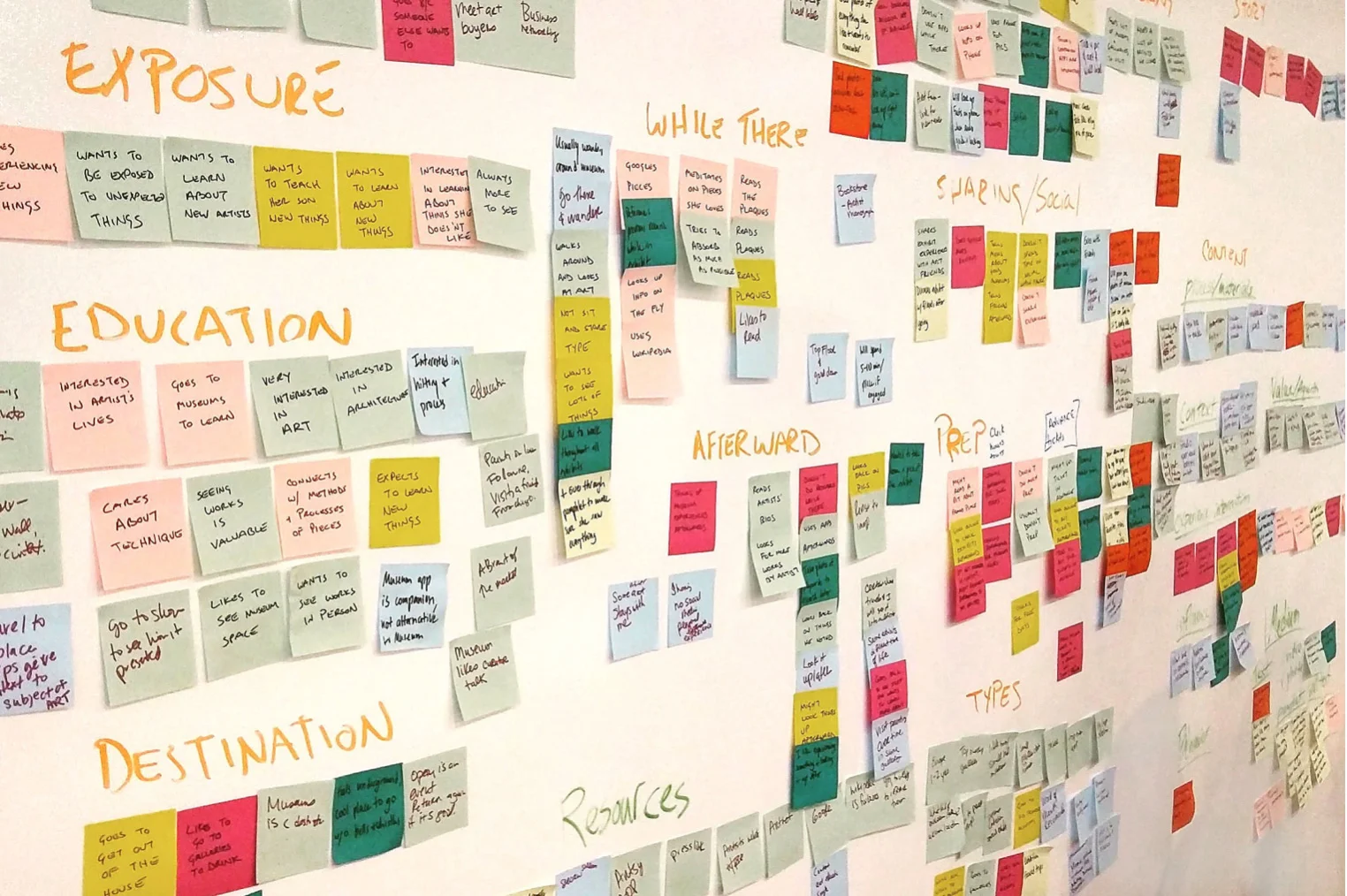 Following the initial business and competitive research, screeners were sent out to find interviewees. 12 people were selected based on their screener responses so we could gain insights into their museum expectations, frustrations, visiting habits, etc. It was important to talk to museum visitors that considered themselves well educated in art and also those who did not.