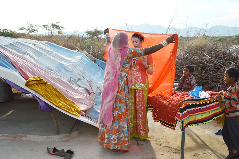 In 2013 I traveled independently throughout India for six weeks. While in the State of Rajasthan on the border of Pakistan, I spent time in the Thar Desert traveling between nomadic gypsy enclaves. There I developed a deep respect for the intricate embroidery and textile traditions of this region. With the support of grants, I founded Tem Jal, an accessories collaboration between myself and the artisans I met during my travels. I chose to partner with an NGO to use a portion of our profit towards tackling the root causes that continue to keep tribal women in India uneducated, exploited, and vulnerable.